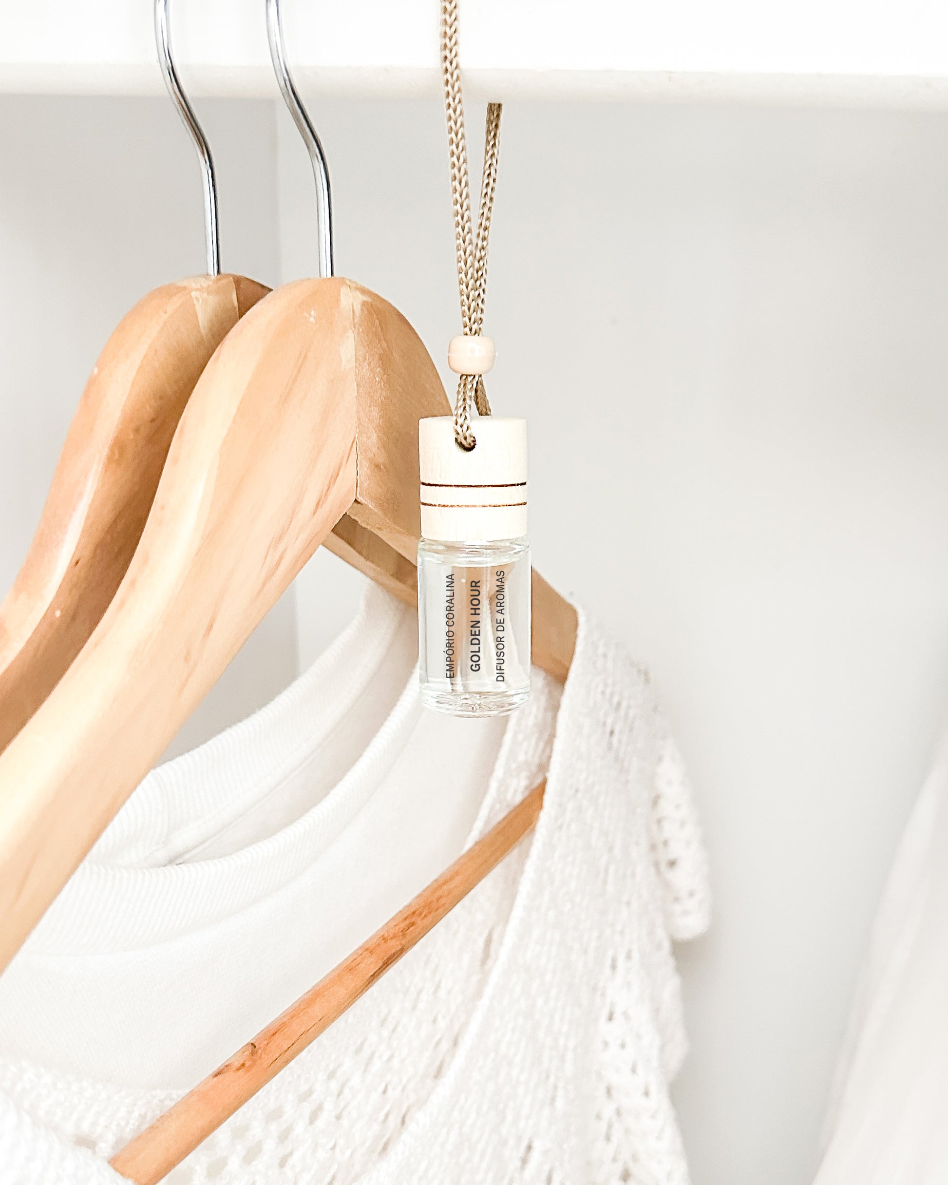 Um difusor aromático para perfumar carros, closets e guarda-roupas de forma contínua, natural e fofa. A madeira absorve o aroma e libera a fragrância aos poucos.