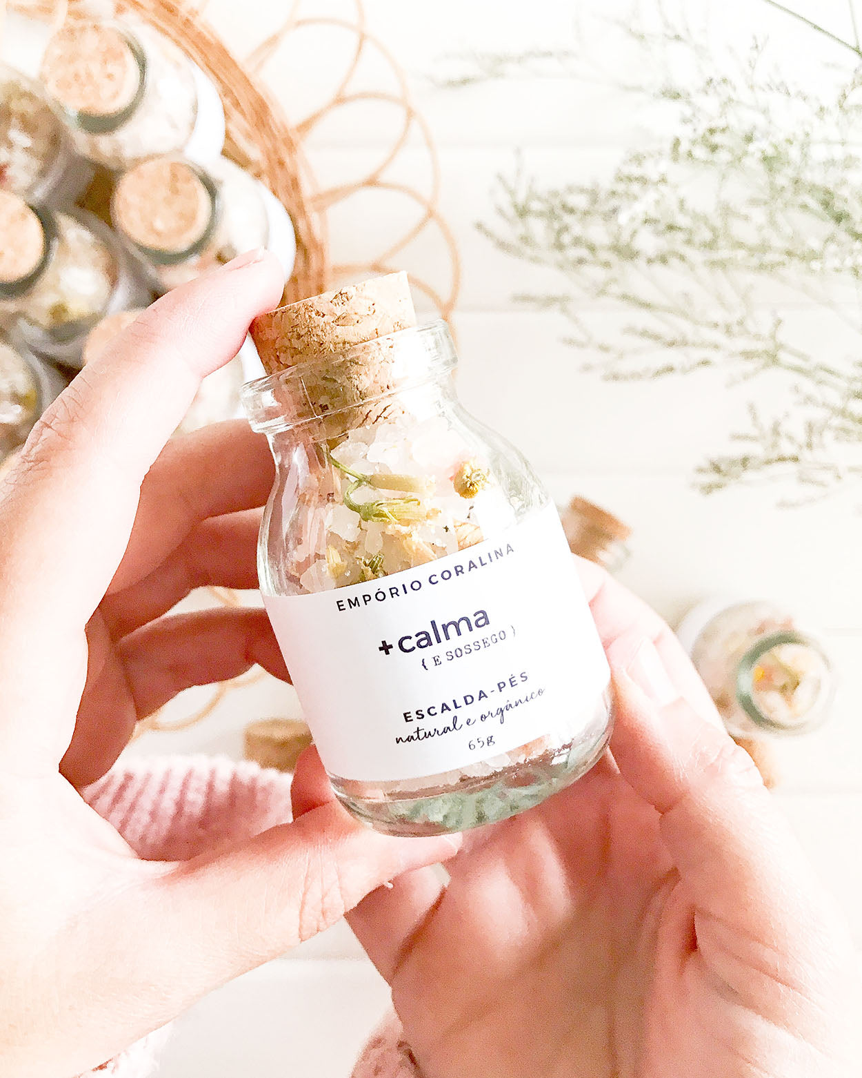 Uma porção cheia de boas energias. Um produto 3 em 1: escalda-pés relaxante, sais de banho e rituais de bem-estar.