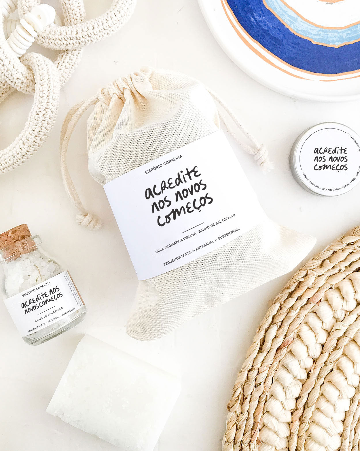 • Embalados todos no saquinho de algodão cru com cinta contando a história da coleção.