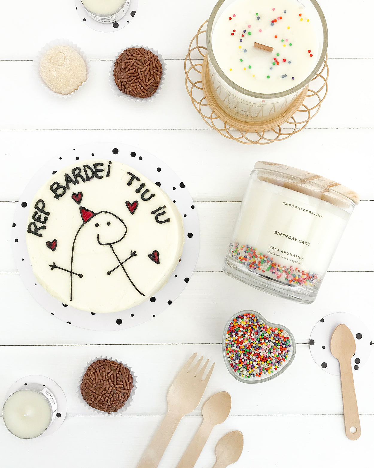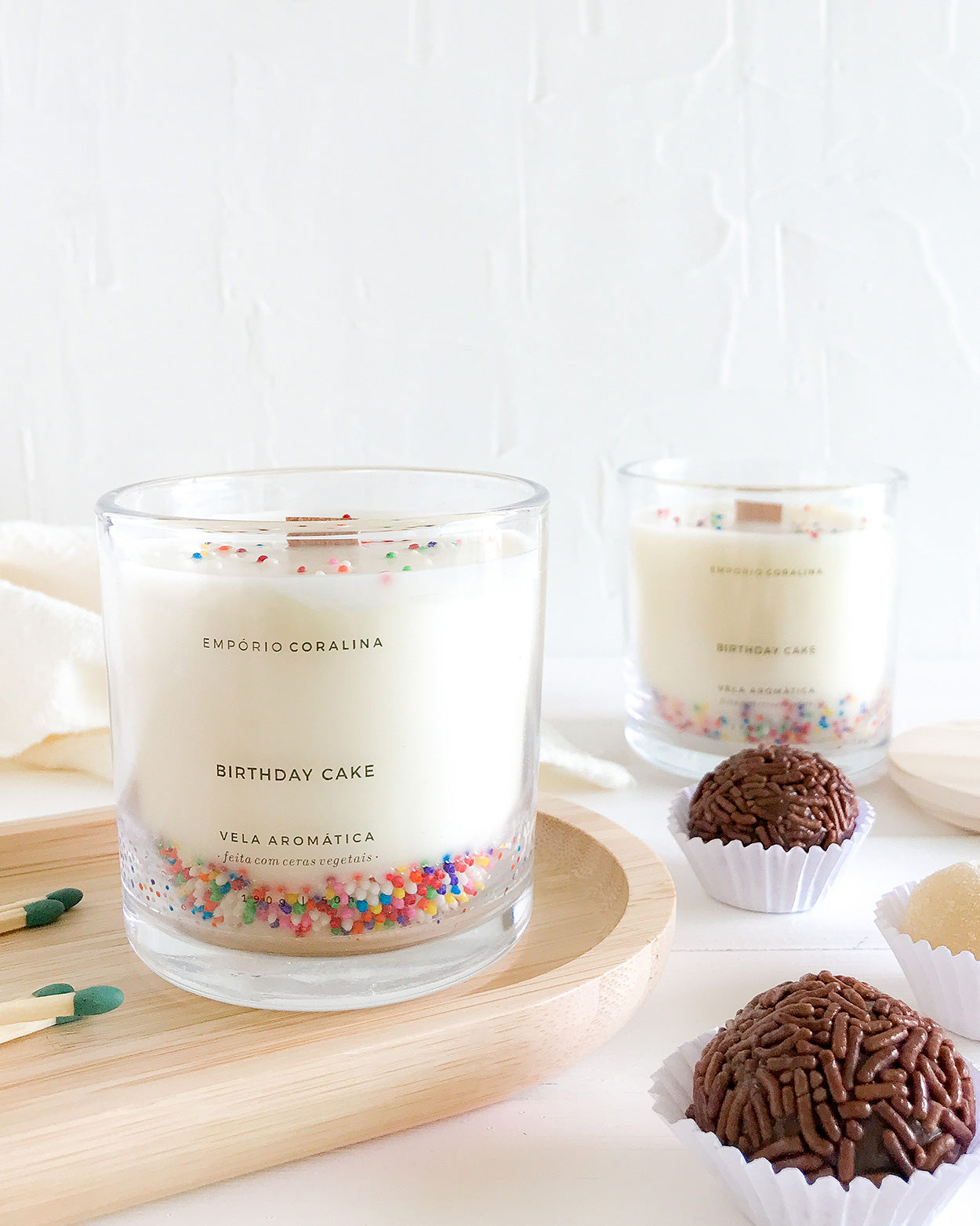 A vela Birthday Cake é feita à mão, vegana e natural - perfeita para celebrar a vida e espalhar amor.